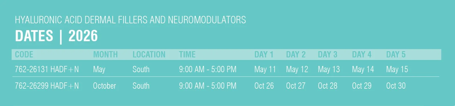 Certification: Level 1 Hyaluronic Acid Dermal Fillers and Neuromodulators Certificate.