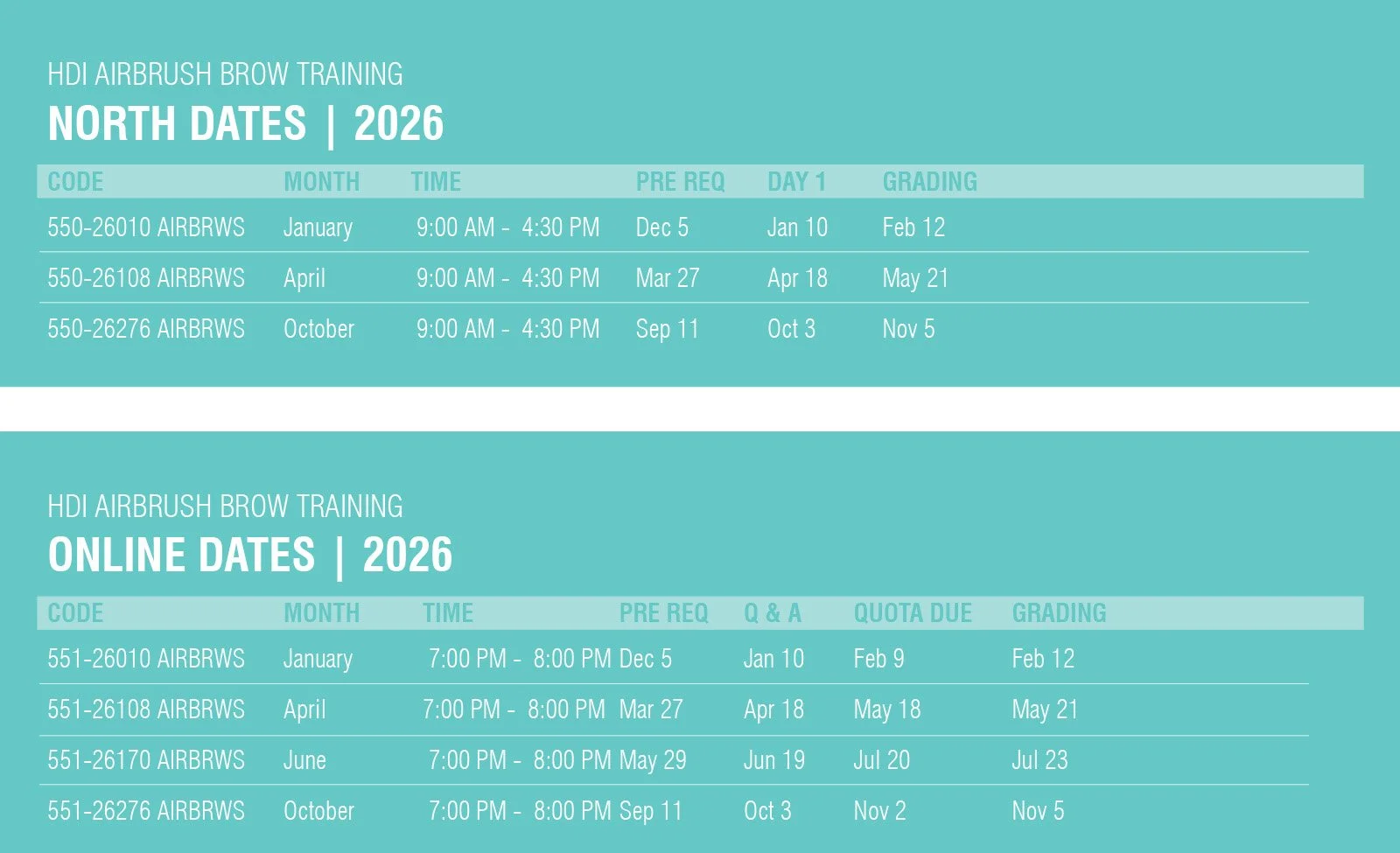Online delivery: Students must complete and submit two Airbrush brow quotas to their educator for feedback and grading to earn their certification.