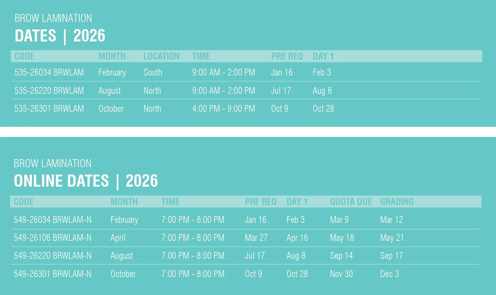 Students will be required to complete an online theory component before and during the course. Training at the school will be focused on achieving strong practical proficiency in Brow Lamination.