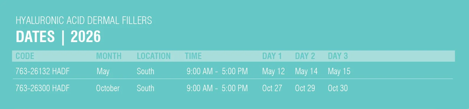 Certification: Level 1 Hyaluronic Acid Dermal Fillers and Neuromodulators Certificate.
