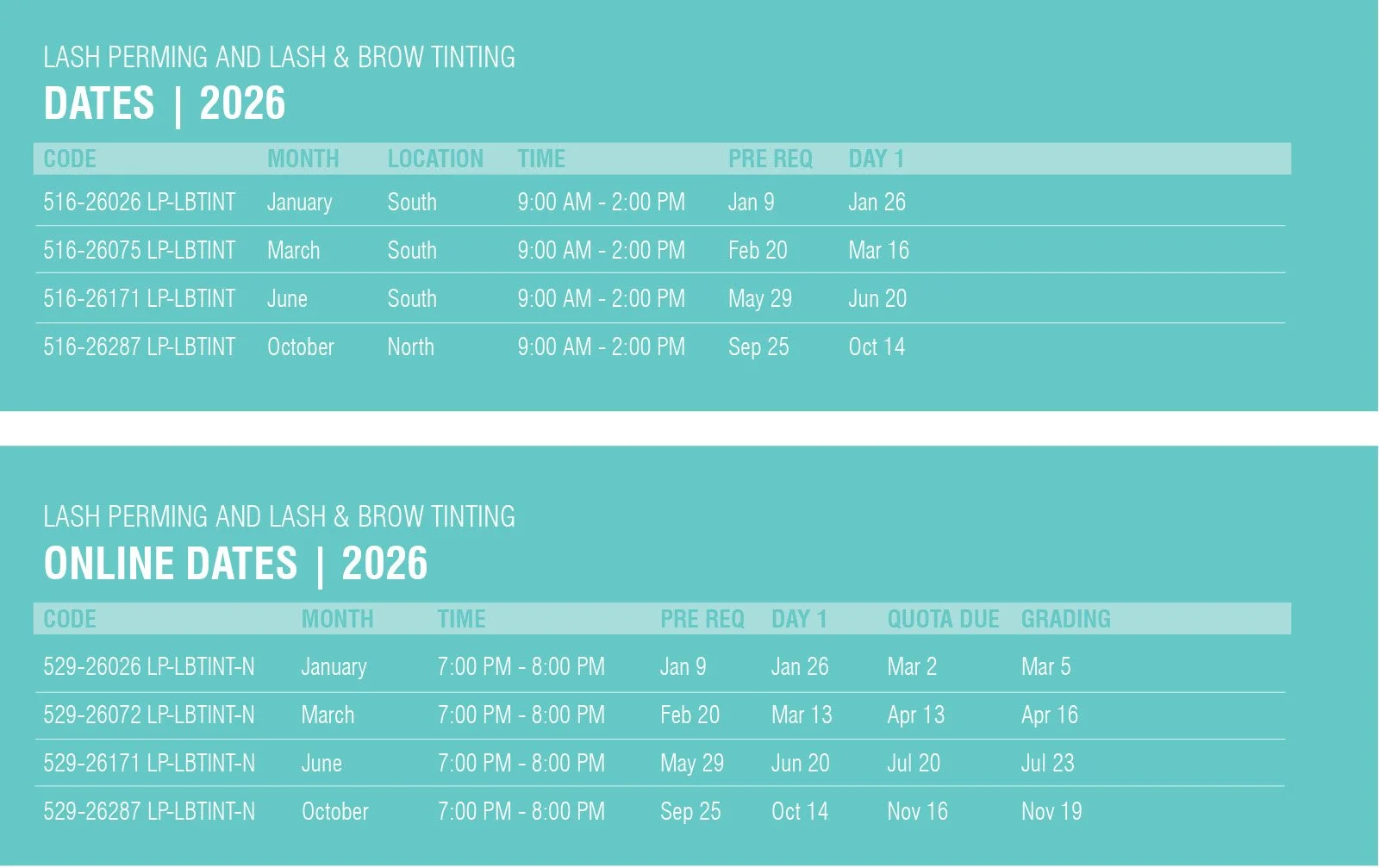 Prerequisite: Eyelash Perming & Tinting Workshops are recomended