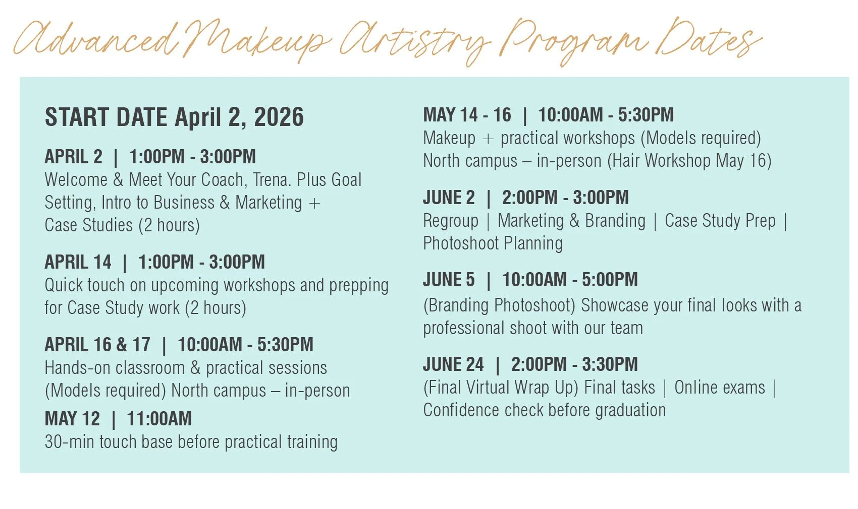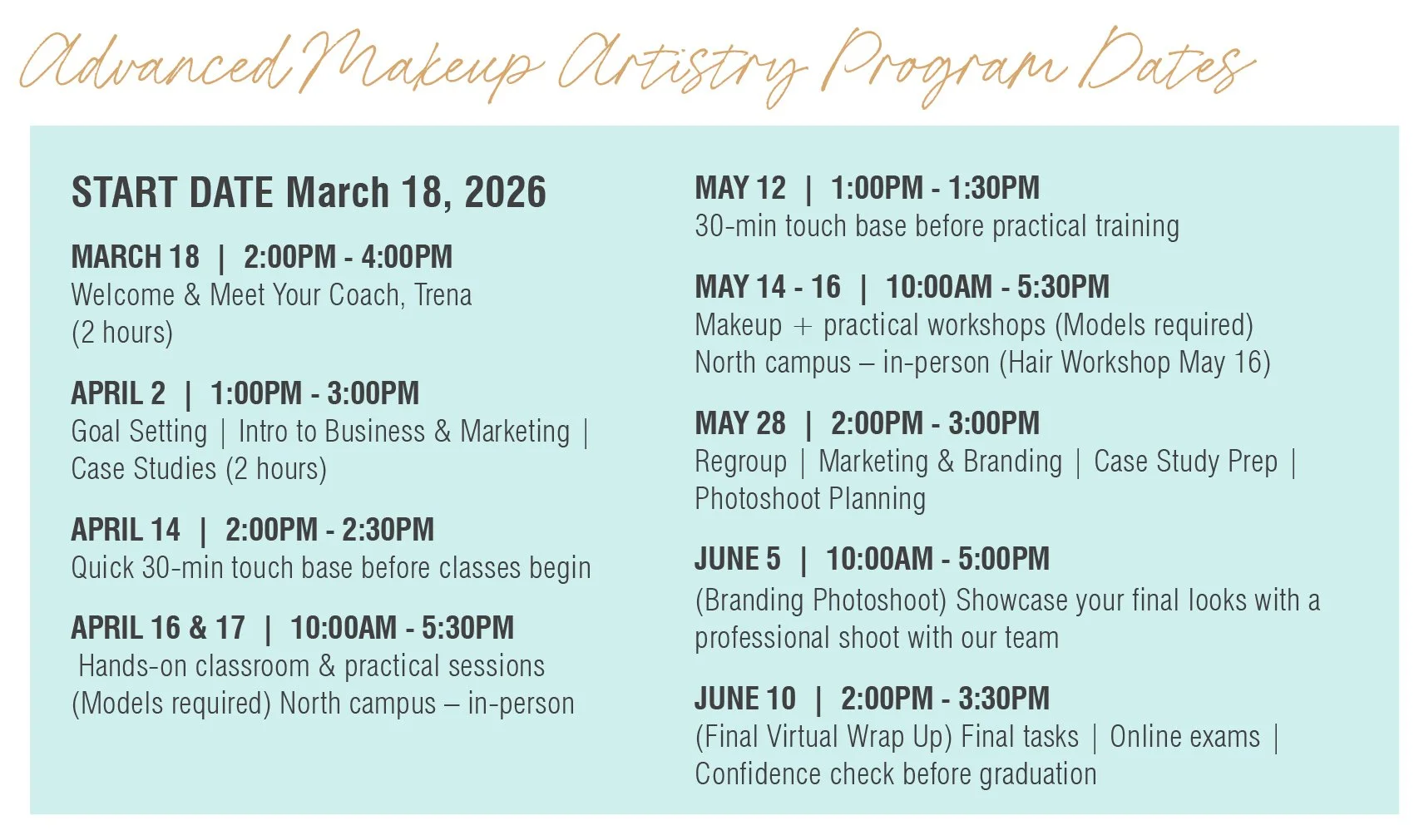 Whether you are just starting out, have some experience, or are simply passionate about beauty, our Mastery Makeup Program is open to anyone ready to explore their potential and elevate growth within a supportive, industry-focused community.